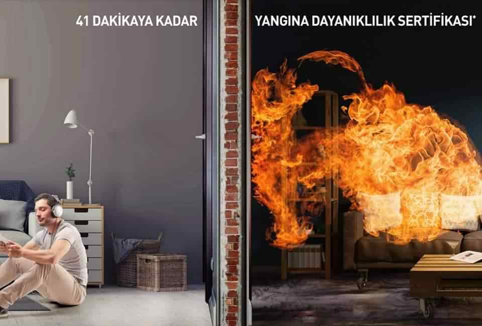 41 dakikaya kadar yangına dayanıklılık sertifikası bulunan kapı modellerimiz mevcuttur.